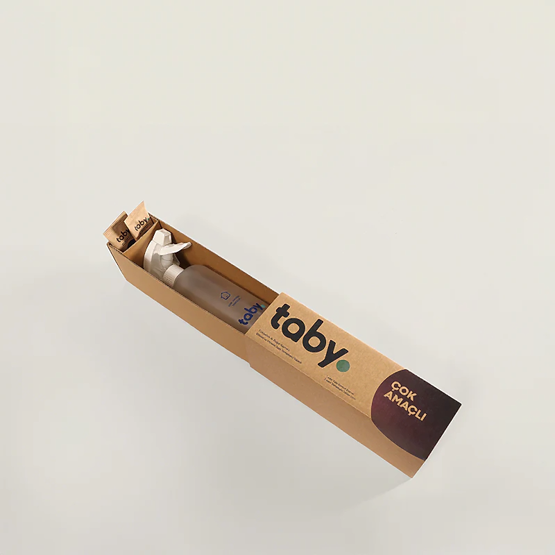 İçerik: 1 adet Taby Çok Amaçlı Sonsuz Şişe + 2 adet Taby Çok Amaçlı Temizleyici Tableti