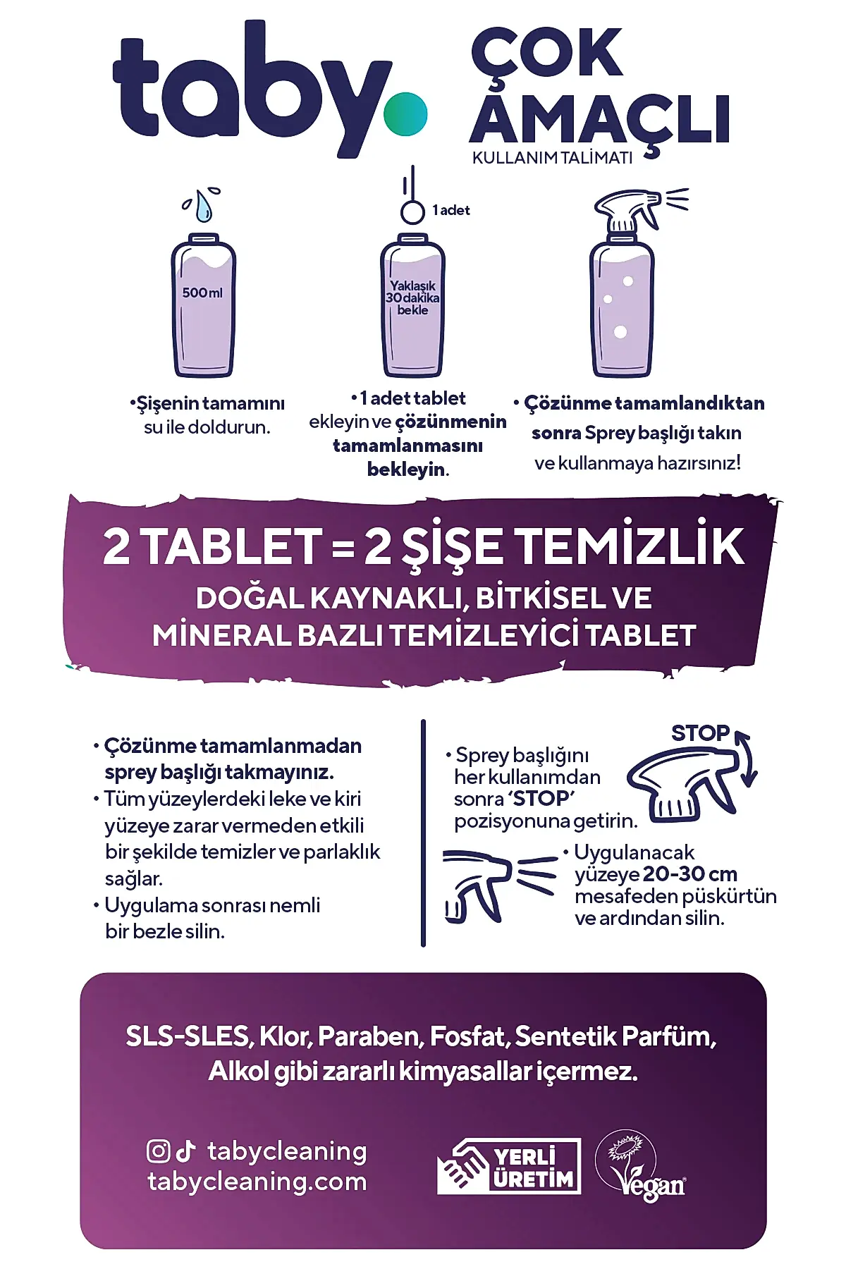 1 Tablet = 500 ml Taby Çok Amaçlı Temizleyici